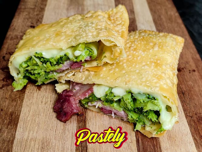 Calabresa fatiada, cebola fatiada e requeijão premium