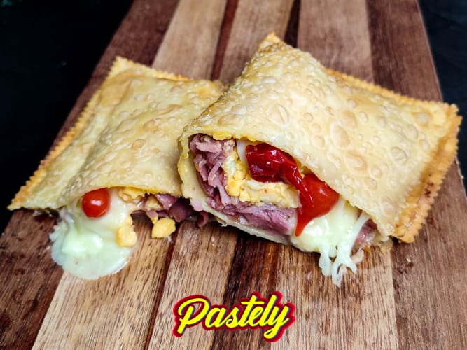 Pastel montado na hora com milho, requeijão premium e mussarela.